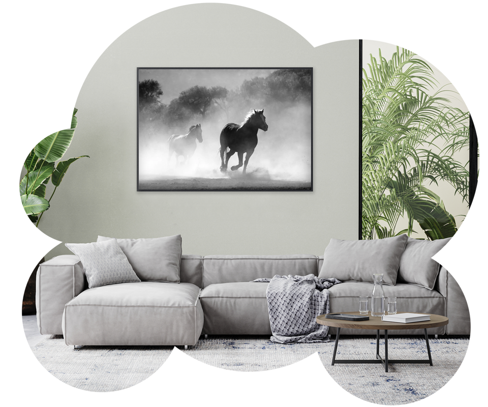 Printed in premium paper, framed in wood and delivered at your door.
